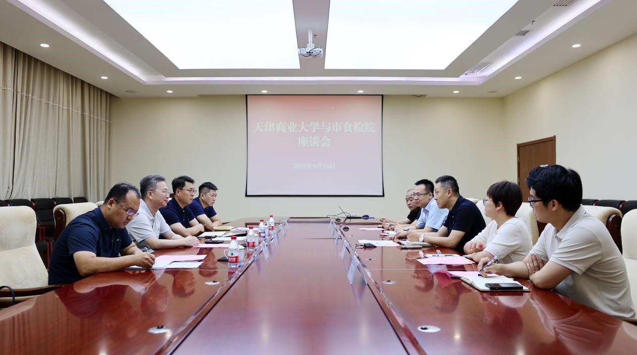 9月16日,副校长余江率后勤处一行赴天津市食品安全检测技术研究院(以下简称“市食检院”),与天津市食品安全检测技术研究院党委书记、院长范楷杰座谈,双方就校园食品安全达成战略合作意向。