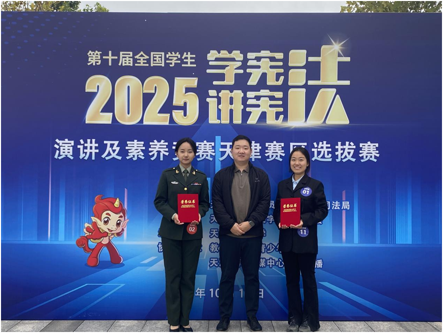 10月11日,天津市第九届学生“学宪法 讲宪法”比赛暨教育部第十届全国学生“学宪法 讲宪法”活动天津赛区选拔赛在天津理工大学举办。德赢官网法学院法学2306班学生郑言凭借优秀的现场表现获得素养竞赛(高校组)一等奖、法学2404班学生张祎获演讲比赛(高校组)一等奖、法学2402班倪梦颖获演讲比赛(高校组)优秀奖。