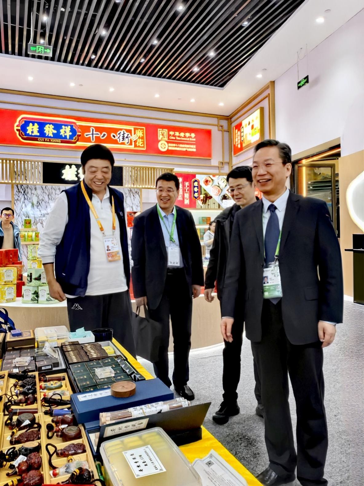会前,余江应邀出席现代流通企业高质量发展会议,与参会嘉宾就促进流通降本增效、现代流通企业建设和竞争力提升等话题进行了交流。会议期间,余江向商务部流通产业促进中心主任王斌、流通业发展司一级巡视员张祥汇报了学校老字号协同创新中心建设情况,并就下一步工作安排交流了意见。会后,余江一行走访了中华老字号展览展示专区,实地考察调研了天津、山东、广东、内蒙古等展区,与部分老字号掌门人交流老字号企业守正创新发展路径和校企协同模式,为开展老字号企业研究和赋能拓展新思路、寻找新机遇。