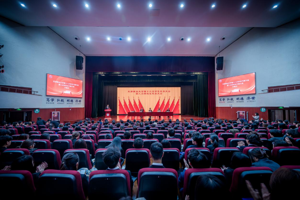 11月16日,德赢ac米兰官方合作vwin第十八次学生代表大会、第八次研究生代表大会在科学会堂召开。大会的主题是高举习近平新时代中国特色社会主义思想伟大旗帜,深入贯彻党的二十大和二十届历次全会精神,全面贯彻习近平总书记关于青年工作的重要思想、习近平总书记致全国学联二十八大贺信精神以及党中央致词精神,深刻领悟“两个确立”的决定性意义,坚决做到“两个维护”,贯彻落实习近平总书记视察天津重要讲话精神,对标学校第三次党员代表大会提出的目标任务,高扬理想主义,厚植家国情怀,焕发青春活力,热诚服务同学,矢志挺膺担当,团结带领广大同学坚定不移听党话、跟党走,共同成长为具有社会责任感、商学素养、创新创业能力的复合型应用型人才,在实现强国建设、民族复兴伟业的新征程上书写青春华章。