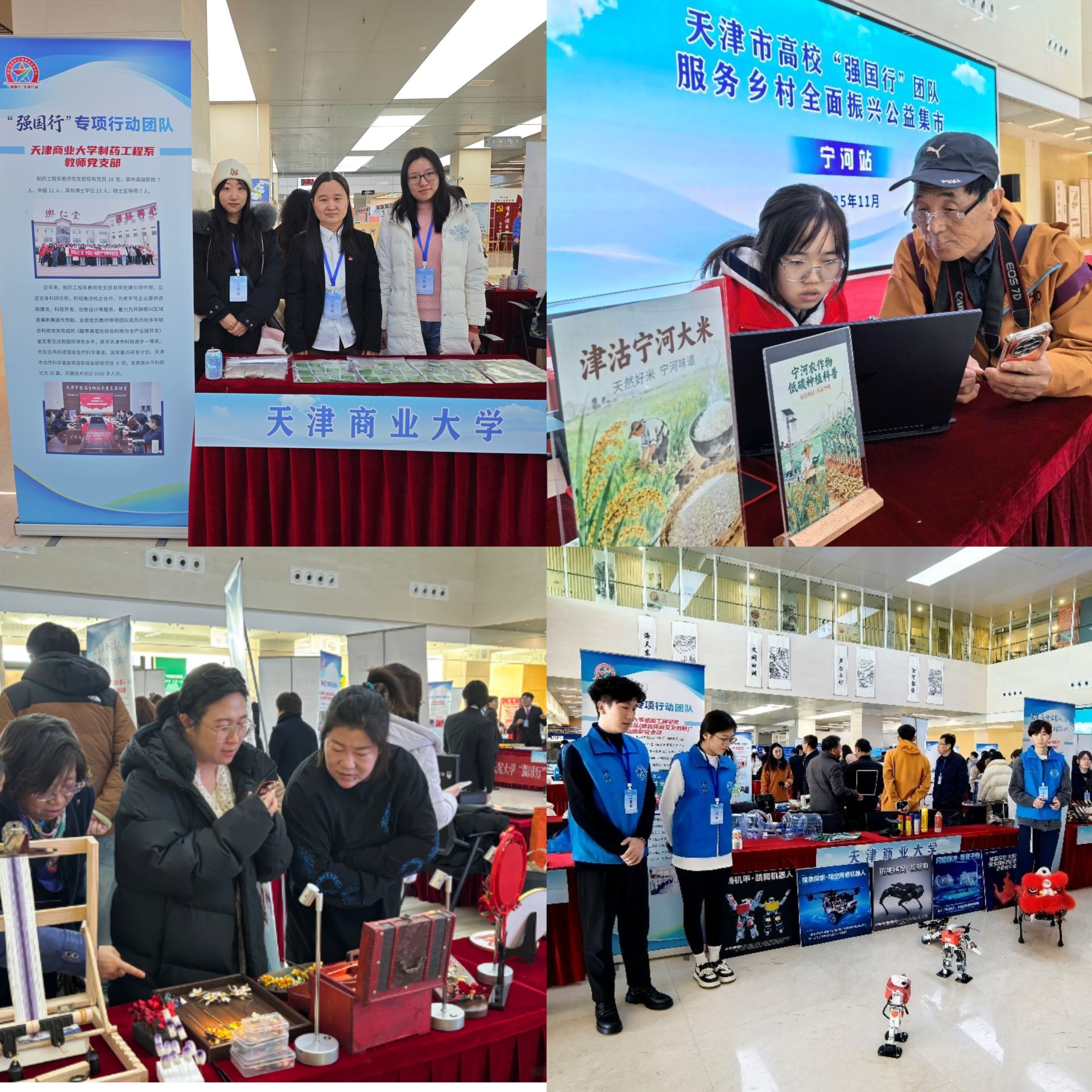 11月27日,由天津市教育两委、宁河区委区政府联合举办的天津市高校“强国行”团队服务乡村全面振兴系列活动开幕式暨公益集市・宁河站活动在宁河区市民中心举行。学校组织全国和天津市高校“双带头人”教师党支部书记“强国行”专项行动团队、样板支部等6个师生党支部,20余人参加活动。