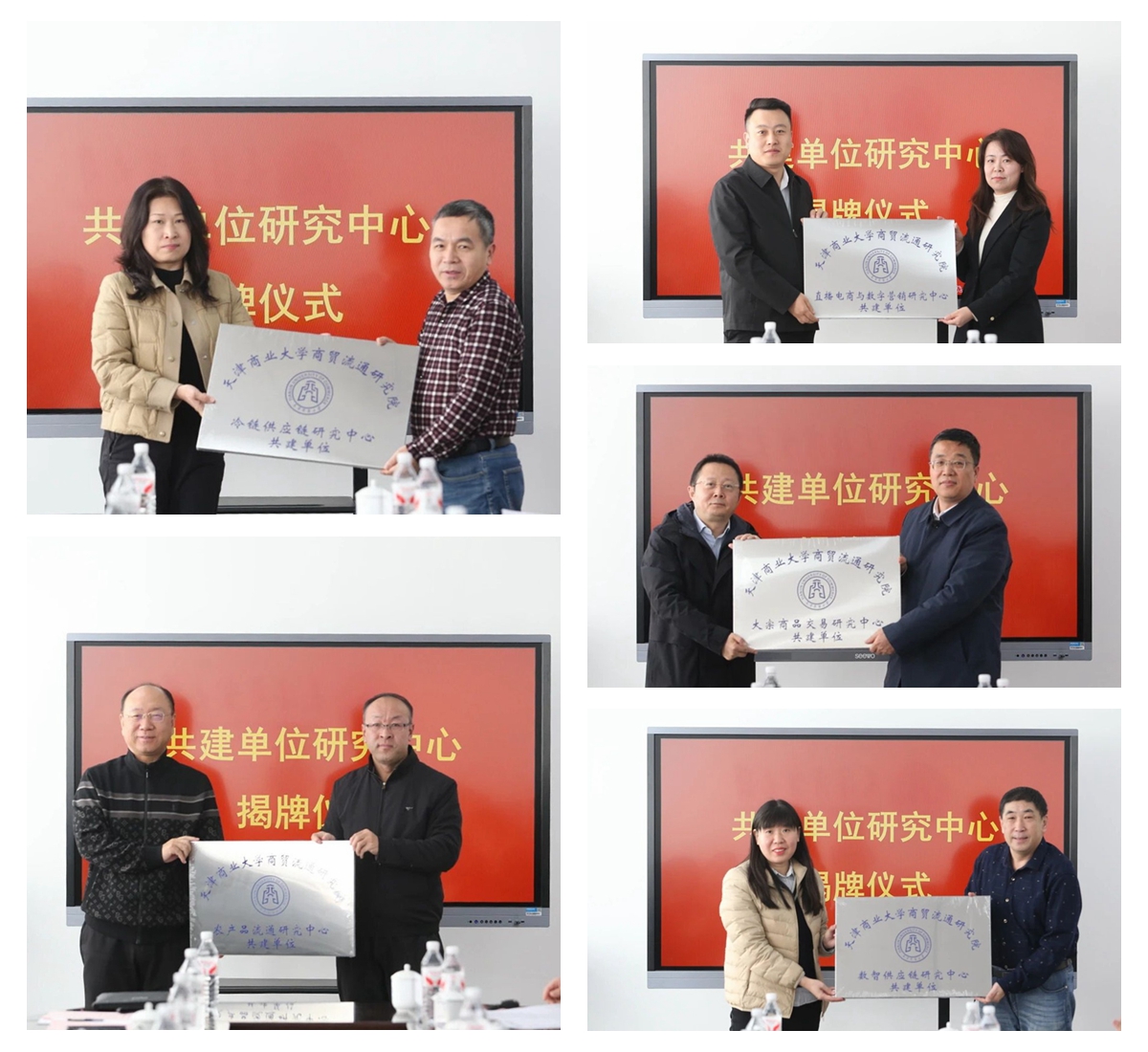 余江副校长和徐凤成会长共同为商贸流通研究院揭牌,并进行了商贸流通研究院共建研究中心揭牌和共建专业委员会成员聘任仪式。