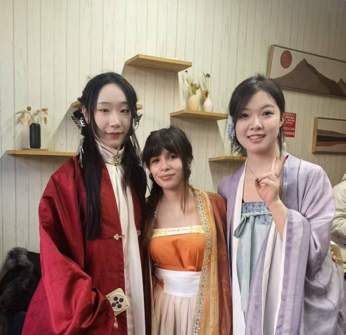 德赢官网留学生们驻足于春联书写和汉服体验区,现场换装试穿,古典服饰与多元面孔相映成趣,成为现场一道独特的风景。更有热情洋溢的中外学生、对唱欢歌,将现场气氛推向高潮。